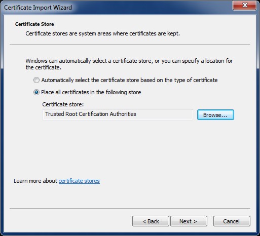 Import Certificate into the Certificate Store